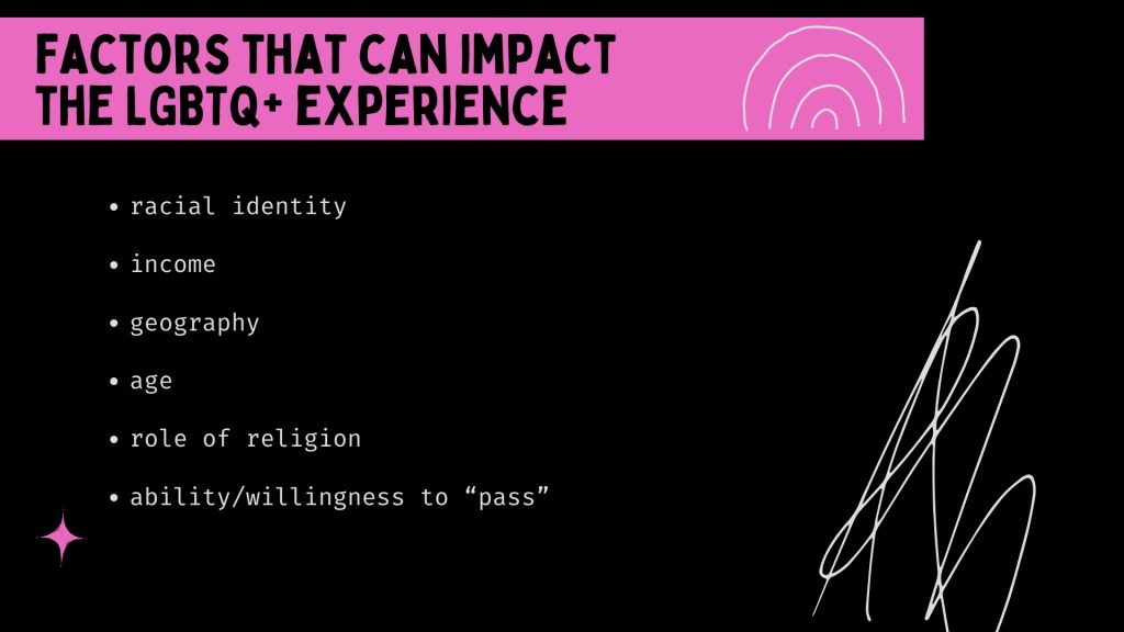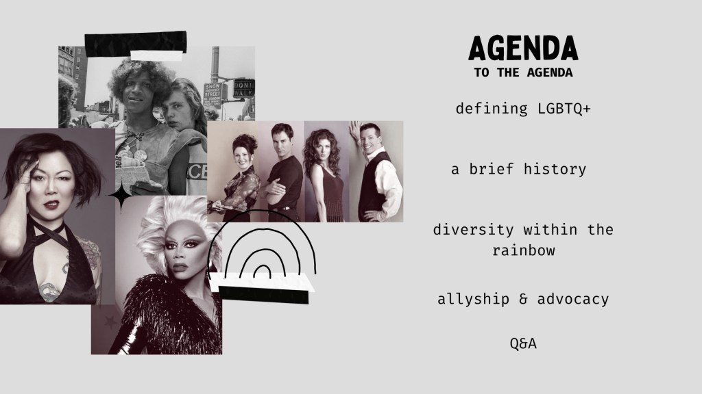I started by reaching out to trusted networks and resources to better understand what this kind of conversation should cover. With only one hour, I had to make tough choices—it wouldn’t be possible to cover everything: our full history from the Greeks to Glee to today, our diverse experiences, or all areas of advocacy.