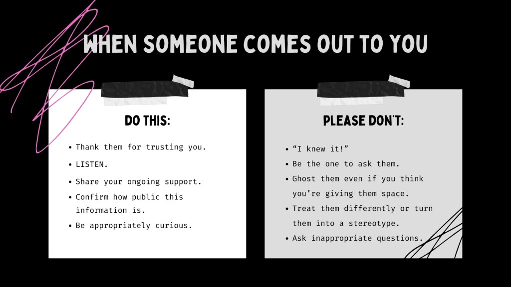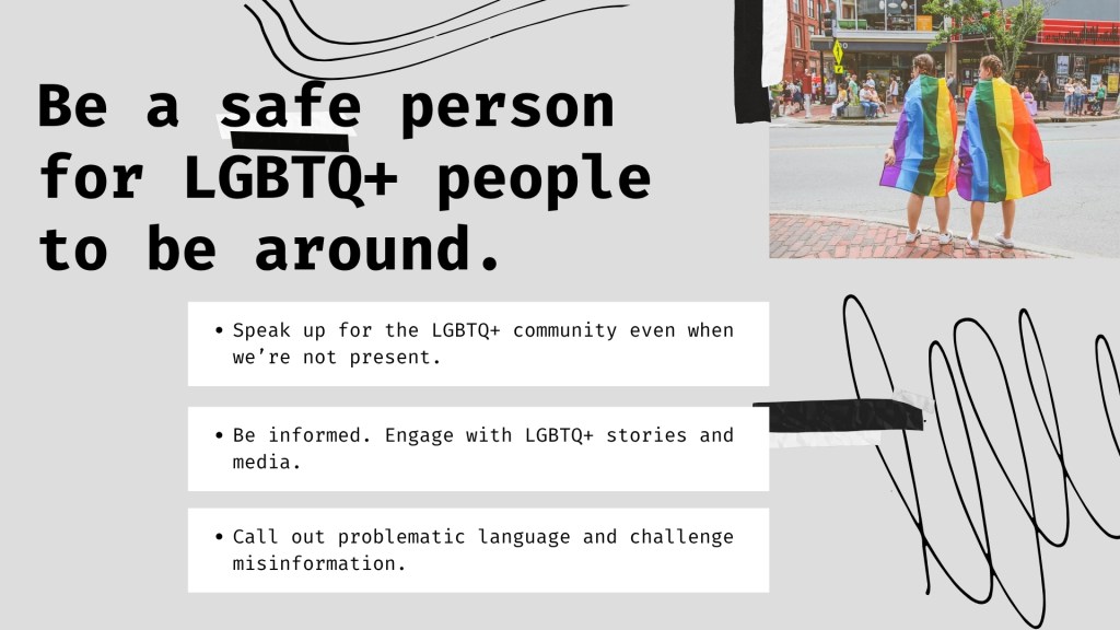 So I mapped a plan. I dove into LGBTQ+ history and compiled a list of key moments that represented change. Then I stepped back to define essential terms and stats—foundational context before getting into the history. From there, I prioritized must-hear messages for allies—insights that were approachable, actionable, and likely to spark an ‘aha’ moment.